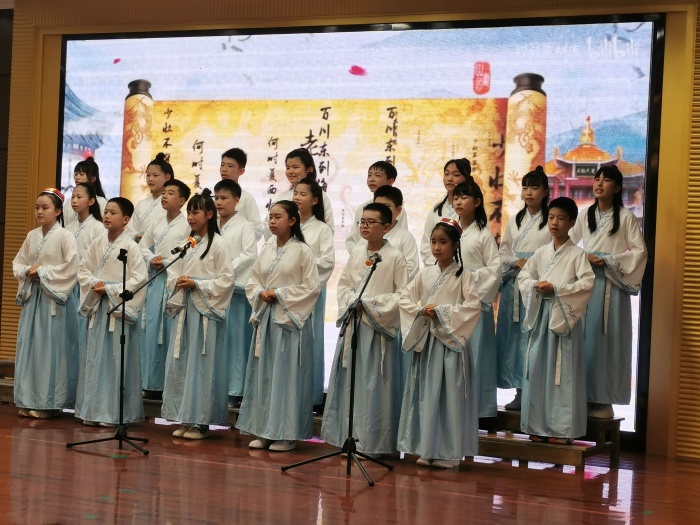 除了新圩小學(xué)領(lǐng)導(dǎo)外,三鄉(xiāng)鎮(zhèn)教育和體育事務(wù)指導(dǎo)中心林榮立副主任、三鄉(xiāng)鎮(zhèn)音樂中心教研組組長、平嵐小學(xué)德育副主任梁藝君先生、新圩村委工作人員何泳鴻先生出席了本次活動(dòng)。六年級學(xué)生在階梯室現(xiàn)場觀看匯演,其他年級學(xué)生和老師都在班級通過釘釘直播方式觀看,家長們也能及時(shí)在云端上看到學(xué)校的精彩節(jié)目。看!雷妍珺老師指導(dǎo)的古箏重奏《云之南》拉開了本次匯演序幕,神秘寧靜的香格里拉,風(fēng)光旖旎的洱海蒼山,美麗熱情的西雙版納彩云之南,那夢幻般神奇的大自然油然而出。接下來的唱誦《長歌行》和《國學(xué)經(jīng)典吟唱》,使我們謹(jǐn)記圣訓(xùn),傳承美德,讓經(jīng)典滋潤童年,讓書香伴我們成長。維妙維肖的舞蹈《進(jìn)新房啦》、優(yōu)美的合唱《大魚》、激情四射,活力滿滿的拉丁舞《旋律》、獨(dú)唱《?。⌒切遣荨?、酷炫又熱辣的健美操《街舞的大合集》、整齊有力的歌曲聯(lián)唱《民歌聯(lián)唱》等節(jié)目讓現(xiàn)場掌聲不斷,真可謂精彩紛呈!