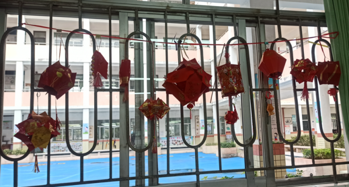 為營造濃厚的節(jié)日氛圍,在寒假期間各班孩子們與家長一同制作燈籠或春節(jié)有關(guān)的剪紙等手工。孩子們充分利用彩紙、利是封、空瓶子等身邊的材料,變廢為寶,制作出了一個(gè)個(gè)創(chuàng)意無窮的環(huán)保花燈,迎接元宵節(jié)的到來。走在教學(xué)樓的走廊上,處處張燈結(jié)彩, 一個(gè)個(gè)精美的花燈,吸引了師生們紛紛駐足,他們時(shí)而欣賞,時(shí)而贊嘆。一盞盞花燈成了校園里一道喜氣洋洋的風(fēng)景,整個(gè)校園充滿了元宵節(jié)的喜慶氣氛!