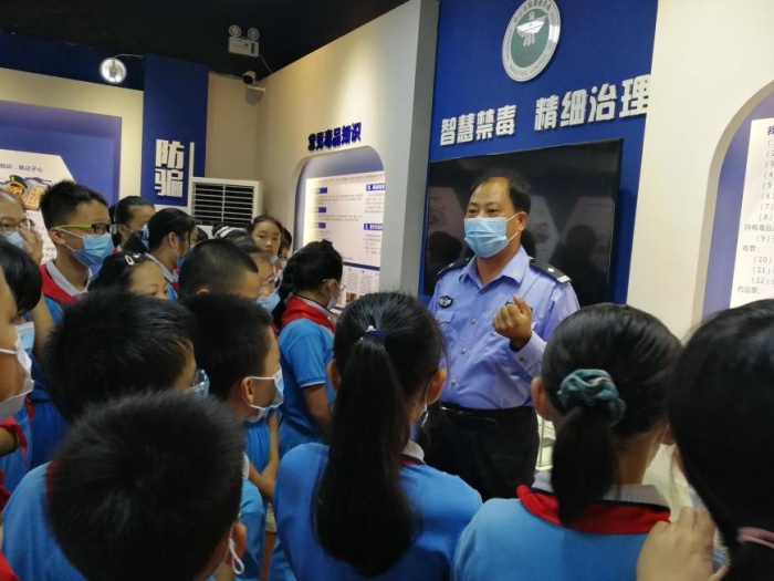 2020年11月20日早上,三鄉(xiāng)鎮(zhèn)載德小學禁毒志愿小組,到三鄉(xiāng)鎮(zhèn)谷都派出所禁毒教育基地參觀,實地開展課外禁毒教育活動。這次活動得到了谷都派出所江劍輝副所長和民警林鎮(zhèn)標叔叔的鼎力支持,林鎮(zhèn)標叔叔不僅安排警力全程護送師生,還親自擔任講解員,給載德小學的師生們送來了既安全又溫暖、既智慧又深刻的活動體驗。