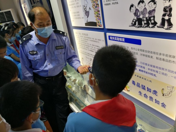 谷都派出所的智慧禁毒基地,雖然占地不大,但卻精致齊全。學生一進到里面,都情不自禁地“啊”地一聲,驚嘆不已。隨后,民警林鎮(zhèn)標叔叔熱情的話語,獲得了同學們熱烈的掌聲,也打開了同學們認真學習的心門。大家認真聆聽林叔叔對毒品、毒品的危害、預防毒品犯罪等知識講解,講解過后主動向林叔叔提出自己心中的疑問。林叔叔盡管連續(xù)值班徹夜未眠,但仍以飽滿的精神狀態(tài)不厭其煩地微笑著回答大家的提問。