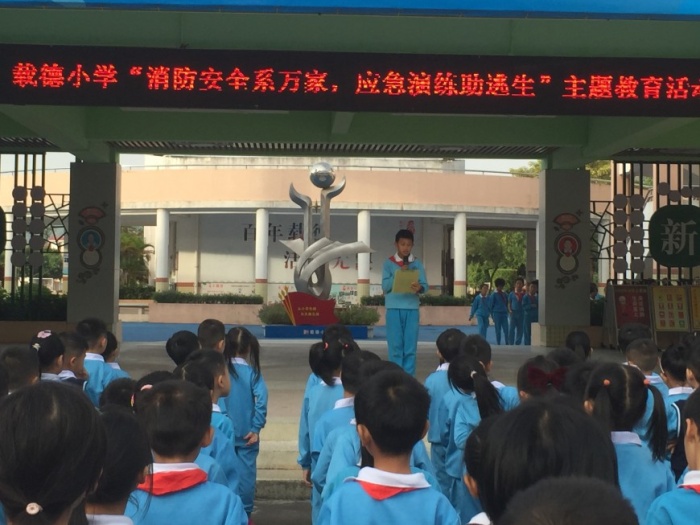 11月9日星期一,為了提高全體師生消防意識(shí),載德小學(xué)在升旗儀式上舉行了“關(guān)注消防,生命至上”為主題的“119”消防安全宣傳月活動(dòng)啟動(dòng)儀式。通過(guò)宣講后,全體師生都知道水火無(wú)情,在觸目驚心的災(zāi)難發(fā)生前,要時(shí)刻保持警惕,保護(hù)自身的人身安全,牢記安全小常識(shí),將安全放在心中。防患于未然,即使發(fā)生火災(zāi)才能保護(hù)自己。