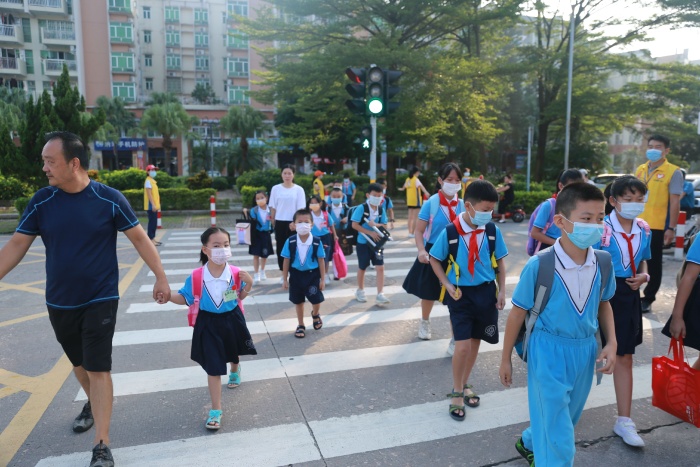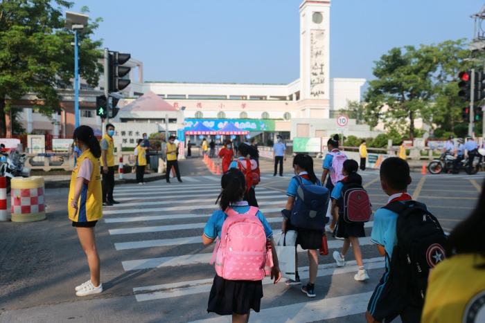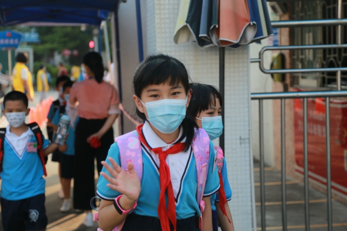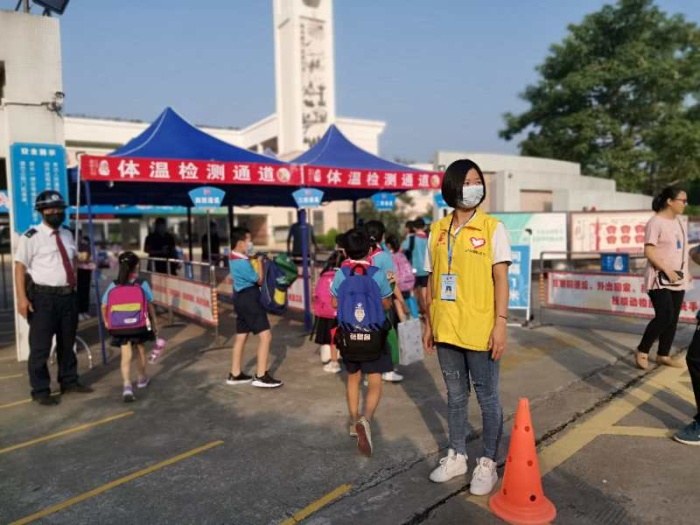 瞧,值日老師們和親子義工家長(zhǎng)們一大早就到了校門(mén)口迎接大家,既有熟悉的面孔,也有新的載德人——有新老師,也有我們可愛(ài)的一年級(jí)的弟弟妹妹們,大家測(cè)溫后興奮有序地進(jìn)入校園。