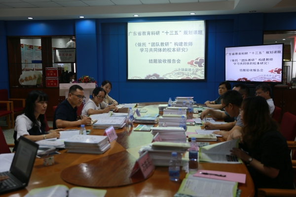 2020年7月16日下午2點半,廣東省教育科研“十三五”規(guī)劃課題——《依托“團隊檢驗”構(gòu)建教師學習共同體的校本研究》結(jié)題報告會在三鄉(xiāng)鎮(zhèn)載德小學會議室舉行。