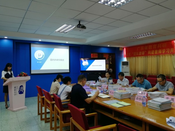 結(jié)題會在曾艷華老師的主持下拉開序幕。第一個議程由課題主持人彭伶俐副校長做結(jié)題報告。彭校長從課題研究背景、國內(nèi)外研究現(xiàn)狀、研究意義、課題論證、研究思路方法、研究過程、成果和效果等方面做了全方位的介紹。