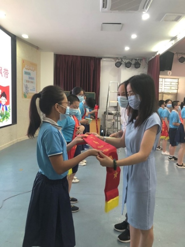 最后,各年級(jí)組長(zhǎng)為文明督導(dǎo)員們頒發(fā)記錄本和紅飄帶,文明督導(dǎo)員們拿著記錄本,將認(rèn)真記錄同學(xué)們的行為情況,披上紅飄帶,將努力承擔(dān)起創(chuàng)建文明班級(jí)、文明校園的責(zé)任。