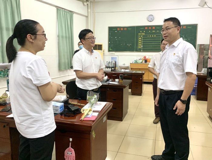 時維九月,碩果盈枝。2020年9月10日下午,沙溪鎮(zhèn)黨委副書記、鎮(zhèn)長徐業(yè)恒,黨委委員黎炳堅、黨政辦主任彭泳勇、教育指導(dǎo)中心主任汪鋒一行蒞臨沙溪中學(xué)開展走訪慰問活動,向勤勉耕耘在教育教學(xué)一線的全體教職工致以節(jié)日的祝福和誠摯的問候。