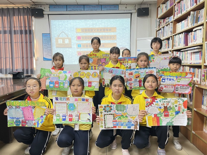 同時利用少先隊(duì)活動課學(xué)到的知識,組織隊(duì)員們制作關(guān)于垃圾分類的手抄報和圖畫,使得孩子們把課堂上學(xué)到的知識,轉(zhuǎn)化為自己的知識。