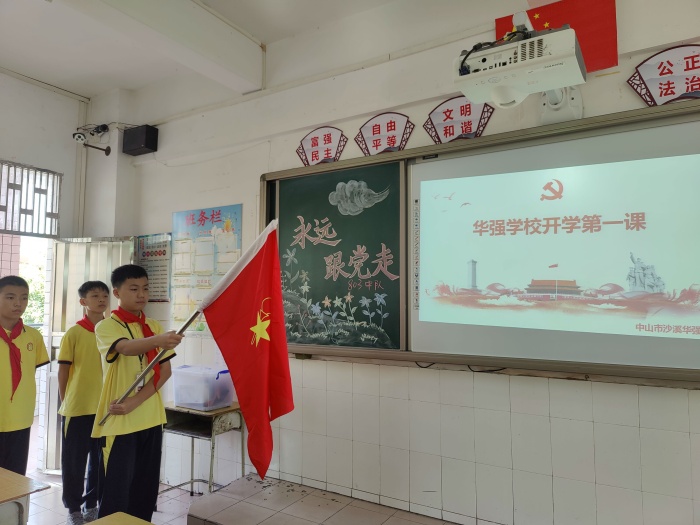 為開展好黨史學習教育,激發(fā)廣大師生愛國熱情,樹立起民族自尊心、自信心和自豪感,讓紅色基因、革命薪火代代相傳,9月1日,華強學校開展2021年秋季學期“永遠跟黨走”開學第一課主題活動。