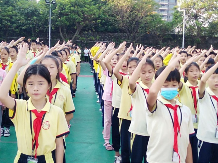 為慶祝中華人民共和國成立71周年,慶祝中國少年先鋒隊(duì)建隊(duì)71周年,教育引導(dǎo)廣大少先隊(duì)員聽黨話、跟黨走,用實(shí)際行動把紅色基因代代相傳,增強(qiáng)少先隊(duì)員光榮感,華強(qiáng)學(xué)校結(jié)合本校少先隊(duì)實(shí)際情況,開展了“傳承紅色基因 爭做新時(shí)代好隊(duì)員”主題隊(duì)日活動。