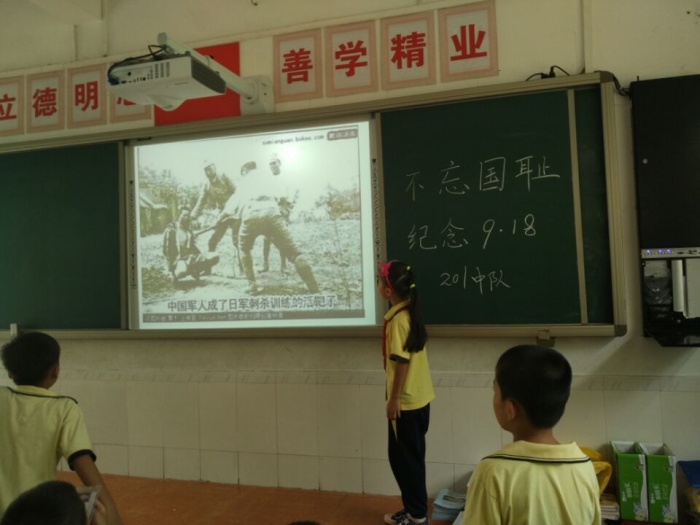 在團、隊會課上,各中隊開展了“勿忘國恥、愛我中華”為主題的9.18愛國主義教育主題隊會,拉開了紀念9.18事變89周年系列活動的序幕。