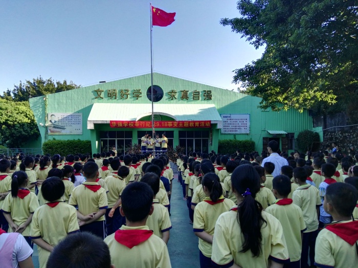 在升旗臺前,團員們、少先隊員們身著統(tǒng)一的服裝,擺成了“9·18”數(shù)字,給師生強烈的心靈震撼,讓大家深感振奮。華強少工委各中隊代表進行了愛國主義詩朗誦,激發(fā)輔導員們和隊員們的愛國主義情懷;德育處周主任向隊員們講述了九·一八事件的經(jīng)過,教育廣大隊員們要了解并時刻銘記那段中國人民屈辱的歷史,牢記中華兒女前赴后繼、浴血奮戰(zhàn)抵抗日本侵略者的豐功偉績。