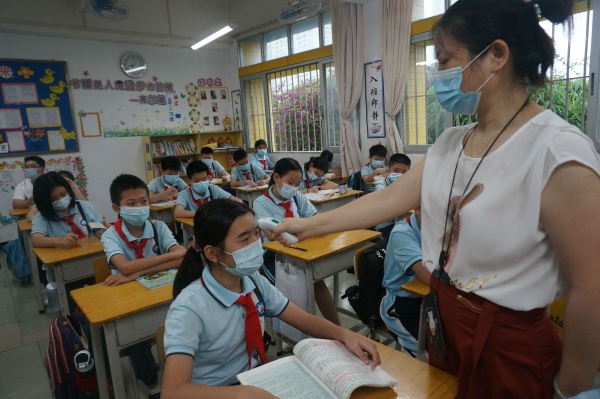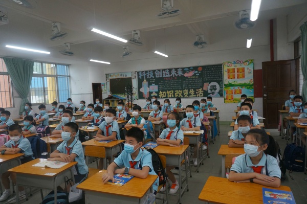 同學們在值日老師的引導下,秩序井然地進入校園。人臉識別、測溫、洗手,經(jīng)過層層安全的流程,同學們回到了昔日溫馨的教室,開啟新學期第一天的學習生活。經(jīng)過這次疫情的考驗,同學們成長了,有的同學早早來到教室就主動幫忙打掃衛(wèi)生、整理書桌;有的同學一坐下來就拿出書本進行晨讀,有的同學牢記防護知識,保持一米距離。老師們?nèi)橥度氲刂v解,學生們聚精會神聆聽。午餐前,同學們保持1米的距離排隊洗手、領(lǐng)餐,安靜入座。老師們化身“保姆”,陪同孩子進餐及午休,并進行午檢。每一個細節(jié)都彰顯出學校對防疫防控工作的一絲不茍和對生命安全的無比重視。放學時間一到,孩子們在老師的組織下有序列隊,保持間距,平安離校。之后,老師對教室、走廊進行打掃:消毒,擦拭桌椅、窗臺、門把手,清理垃圾,化身孩子們的“安全衛(wèi)士”,用愛心、細心給孩子們最好的安全保障。同學們在鳥語花香的校園里盡情地朗讀,學習,開展課間活動,口罩下是一張張幸福的笑臉,口罩外是一雙雙渴望知識的眼睛,他們樂在其中,很快就適應(yīng)了學校的學習生活。