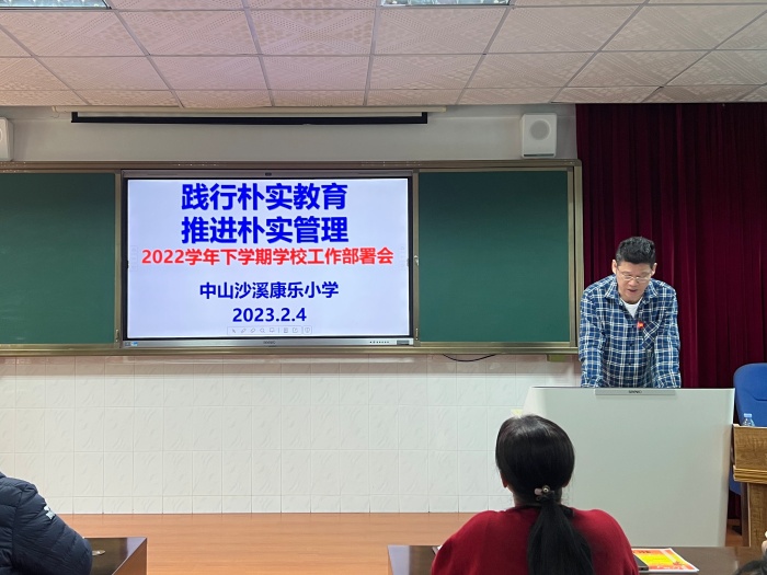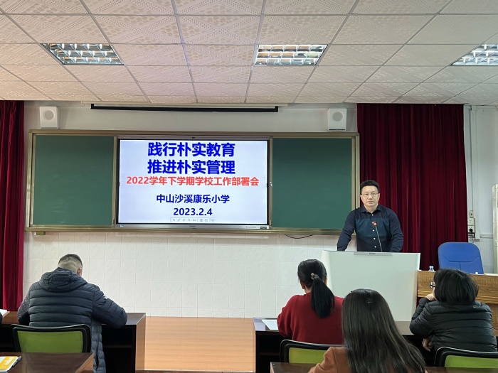兔年東風(fēng)春來早,揚(yáng)帆奮進(jìn)正當(dāng)時(shí)。為確保新學(xué)期開好局、打好底、起好步,進(jìn)一步統(tǒng)一思想、凝心聚力,2月4日上午,中山沙溪康樂小學(xué)在學(xué)校報(bào)告廳召開題為《踐行樸實(shí)教育,推進(jìn)樸實(shí)管理》2022學(xué)年下學(xué)期學(xué)校工作部署會(huì),全體教師參加會(huì)議。