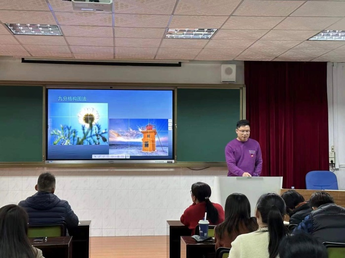 本次教師個性論壇活動首先是曹家河老師帶來《常規(guī)拍攝技術(shù)培訓(xùn)》,他以專業(yè)的視角深入淺出地通過主體、構(gòu)圖、角度、前景、景別、組合等方面介紹拍攝技巧,讓老師們初步掌握基本拍攝技巧,同時還提升了審美意識。