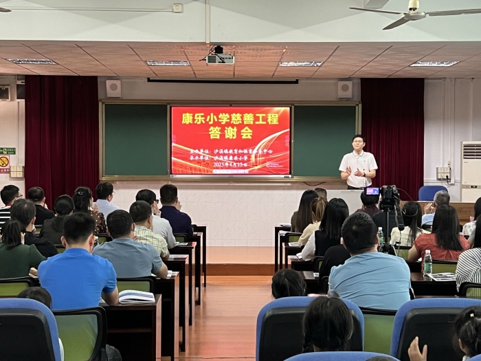 “崇文樂善、厚德進(jìn)取”是沙溪人精神。2023年,中山市瀘州商會愛心企業(yè)家積極為康樂小學(xué)翻新校園所有課室和一些場所,優(yōu)化辦學(xué)環(huán)境,為教育事業(yè)提供了大力支持,給孩子們帶來了更好的學(xué)習(xí)條件。為了表達(dá)對中山市瀘州商會愛心企業(yè)家們的感激之情,4月13日上午,康樂小學(xué)慈善工程答謝會在學(xué)校報(bào)告廳隆重舉行。中山市沙溪鎮(zhèn)黨委書記徐成彬、副鎮(zhèn)長余添宏、黨政辦主任貝鵬程、教體中心主任寧云志、中山市瀘州商會會長鄧明超、愛心企業(yè)家代表,以及沙溪各學(xué)校校長、康樂學(xué)校家長、教師、學(xué)生代表等近200人出席了本次慈善工程答謝會。