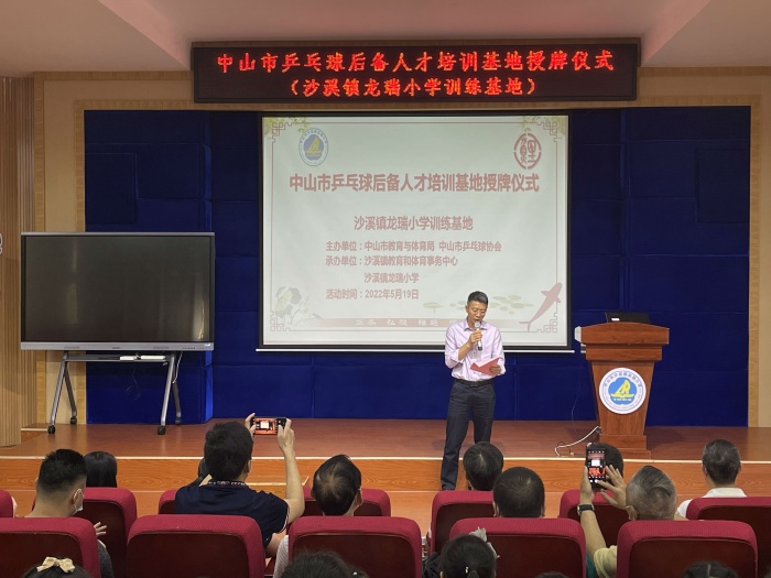 為貫徹落實(shí)國家全民健身戰(zhàn)略,推動(dòng)乒乓球運(yùn)動(dòng)發(fā)展,進(jìn)一步推進(jìn)乒乓球后備人才培養(yǎng)。5月19日下午,中山市乒乓球協(xié)會到沙溪鎮(zhèn)龍瑞小學(xué)舉行中山市乒乓球后備人才培養(yǎng)基地授牌儀式,將為龍瑞小學(xué)乒乓球運(yùn)動(dòng)的開展提供有力的支持與指導(dǎo)。