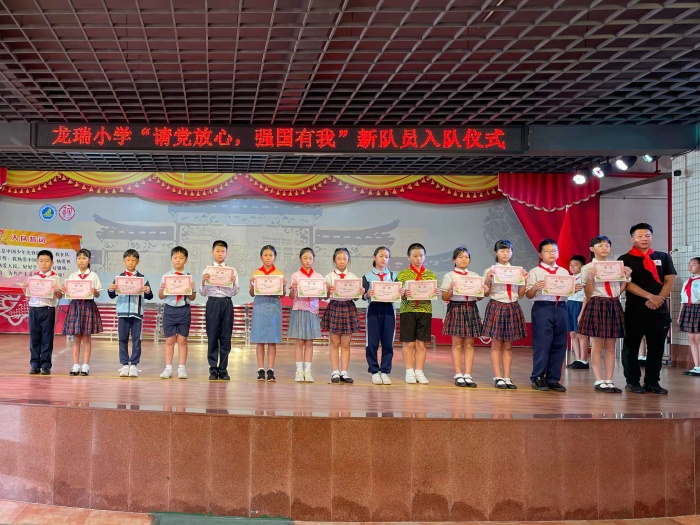 花兒朵朵,童心拳拳,莊嚴的入隊儀式,激發(fā)了龍瑞小學隊員們的自豪感和使命感,激勵著每一個少先隊員積極向上拼搏,筑夢更美好的未來,努力成長為擔當民族復興大任的時代接班人,為祖國的發(fā)展貢獻自己的力量。