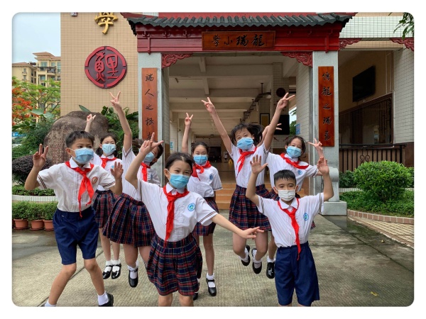 早上7:30,“sunny funny 迎返鯉,我們都愛你”歡迎儀式拉開序幕,為了迎接全校學(xué)生順利返校,老師和少先隊干們早早在校門迎接全體龍小鯉返校,大家揮揮手,帶上“微笑標(biāo)志”動作互相打招呼,還給“小鯉魚”們送上一枚“龍小鯉”獎?wù)?,“龍小鯉”們踏著校歌的旋律,愉快地走進(jìn)校園。全校師生通過龍瑞小學(xué)電視臺,參與了 “敬畏生命,勇于擔(dān)當(dāng);最強小鯉,擁抱陽光”主題校會?!甭?這是龍小鯉唱給老師們的歌,隨著師生的詩、歌表演,主題校會正式開始。全體師生通過直播參加了莊嚴(yán)的升旗儀式,會上由高玉璇校長帶領(lǐng)全體行政、學(xué)生代表通過校園電視臺,為全校師生呈現(xiàn)了一場令人耳目一新又內(nèi)涵豐富的主題校會。他們通過演唱、朗誦、講故事等形式,生動地向師生闡釋了校會的主要內(nèi)容:一是正確認(rèn)識“瘟疫”;二是疫情帶來的巨大損失;三是黨和政府的有效防控;四是令人敬佩的抗疫英雄;五是珍愛生命,擁抱陽光。