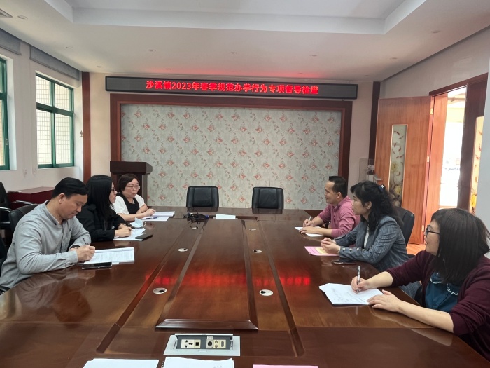 為落實國家“雙減”政策要求,加強中小學(xué)規(guī)范辦學(xué)行為管理,根據(jù)《沙溪鎮(zhèn)2023年春季規(guī)范辦學(xué)行為專項督導(dǎo)檢查的通知》要求,3月9日上午,由沙溪中學(xué)副校長肖林森、申明亭學(xué)校主任黃枚玉、濠涌小學(xué)主任雷艷組成的沙溪鎮(zhèn)規(guī)范辦學(xué)專項督導(dǎo)檢查組,到龍瑞小學(xué)開展2023年春季規(guī)范辦學(xué)行為專項督導(dǎo)檢查。龍瑞小學(xué)高玉璇校長、楊飛羽副校長接待了督導(dǎo)檢查組成員。