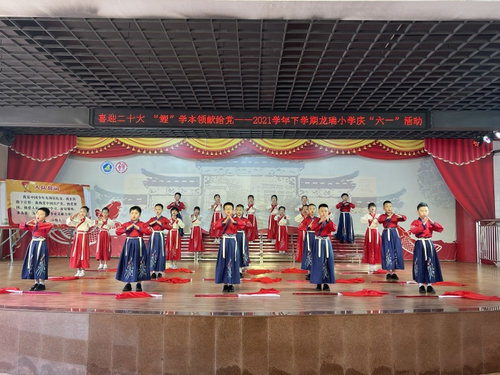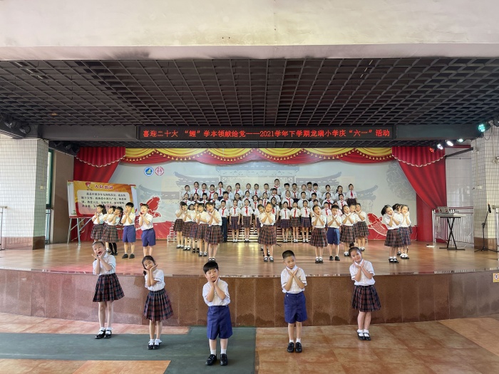 5月31日,學(xué)校舉行了一年級(jí)新隊(duì)員入隊(duì)儀式暨慶“六一”文藝匯演活動(dòng),新隊(duì)員入隊(duì)儀式上,一年級(jí)90名優(yōu)秀小朋友戴上了鮮艷的紅領(lǐng)巾,成為光榮的少先隊(duì)員。為表彰在各方面表現(xiàn)優(yōu)秀的隊(duì)員,龍瑞小學(xué)少工委舉行了簡(jiǎn)單而隆重的“紅領(lǐng)巾爭(zhēng)章”頒章儀式,少工委主任高玉璇為榮獲“紅領(lǐng)巾獎(jiǎng)?wù)隆眰€(gè)人一星章個(gè)人和集體頒發(fā)了獎(jiǎng)?wù)隆kS后,全校學(xué)生以線上線下的方式舉行了文藝匯演,一年級(jí)和六年級(jí)同學(xué)在星光廣場(chǎng)觀看表演,其他年級(jí)在課室觀看直播,同學(xué)們載歌載舞,節(jié)目精彩紛呈,充滿了節(jié)日的氣氛。在勞動(dòng)科組的組織下,全校以班級(jí)為單位分年級(jí)開(kāi)展了以勞動(dòng)為主題的慶祝活動(dòng)。班級(jí)成了勞動(dòng)競(jìng)技場(chǎng),疊衣服、系紅領(lǐng)巾、穿鞋帶、垃圾分類(lèi)……同學(xué)們使出渾身解數(shù),展示勞動(dòng)本領(lǐng),過(guò)了一個(gè)快樂(lè)而有意義的“六一”兒童節(jié)。