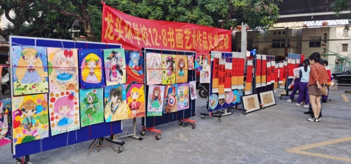 11月30日下午四點,龍頭環(huán)學校書畫社團到校門外開展“12.8書畫藝術(shù)作品義賣活動”,路過的學生、家長和民眾慷慨解囊,購買愛心書畫作品。只見老師和學生們在布置攤位,他們忙得不亦樂乎,同學們掛著自己的作品,臉上洋溢著微笑。