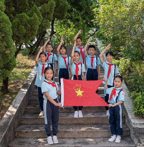 迎著朝陽的晨曦,濠涌小學(xué)升旗臺前隊旗飄揚,隊員們響起了嘹亮的隊歌,以熱烈的掌聲歡迎少先隊員代表王嘉琪上臺講話。王嘉琪同學(xué)與大家一起回顧了少先隊的發(fā)展歷史,號召大家作為少先隊員要處處以身作則,不光在學(xué)習(xí)上要勇于爭先,勇攀高峰,在日常行為習(xí)慣上也要起到表率作用,積極響應(yīng)學(xué)校本學(xué)期“垃圾不落地”的德育主題,把校園建設(shè)得更加干凈、整潔。接著,濠涌小學(xué)少工委主任、校長辜鴻雁向少先隊員們寄語,希望少先隊員們在學(xué)習(xí)中增長知識,在實踐中展現(xiàn)風(fēng)采,在活動中放飛理想,讓胸前的紅領(lǐng)巾更加鮮艷。