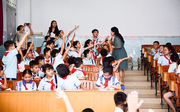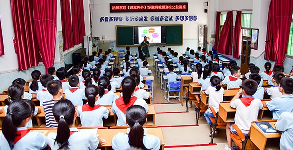 活動過程中,鄒老師創(chuàng)設(shè)了很多和學(xué)生互動的環(huán)節(jié),和學(xué)生一起分享交流,學(xué)生樂在其中又收獲了很多新知識、新啟發(fā),每每聽到學(xué)生精彩的發(fā)言時鄒老師拍掌夸贊,并向他們贈送了小禮物,學(xué)生的熱情高漲,小手舉得高高的。