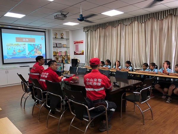 目前已進(jìn)入夏季,是學(xué)生溺水死亡的高發(fā)期。為確保學(xué)生的生命安全,為切實(shí)加強(qiáng)安全教育管理、防止發(fā)生溺水事件,7月13日下午2點(diǎn),沙溪鎮(zhèn)濠涌小學(xué)特別邀請了中山市來幫救災(zāi)扶助中心彩虹救援隊(duì)為濠涌小學(xué)全體師生進(jìn)行培訓(xùn)。