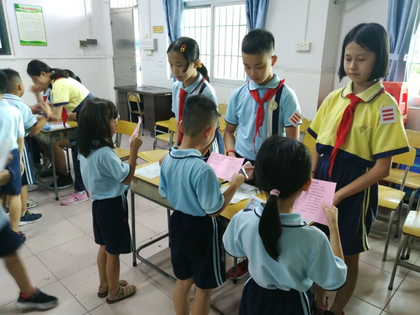 在班主任的帶領(lǐng)下,預(yù)備隊(duì)員們手持“入隊(duì)闖關(guān)卡”,井然有序、興致盎然地進(jìn)行闖關(guān)活動(dòng)?!芭宕骷t領(lǐng)巾”“敬隊(duì)禮”“唱隊(duì)歌”“呼號(hào)”等基本常識(shí),預(yù)備隊(duì)員們對(duì)答如流,個(gè)個(gè)激情滿懷,隊(duì)禮標(biāo)準(zhǔn),隊(duì)歌嘹亮。每過(guò)一關(guān),就能獲得一枚小貼紙,連闖6關(guān),即為通關(guān)成功!經(jīng)過(guò)“過(guò)五關(guān)斬六將”,預(yù)備隊(duì)員們?nèi)客P(guān)。手捧通關(guān)成功的闖關(guān)卡,預(yù)備隊(duì)員們臉上露出自豪而又幸福的微笑。