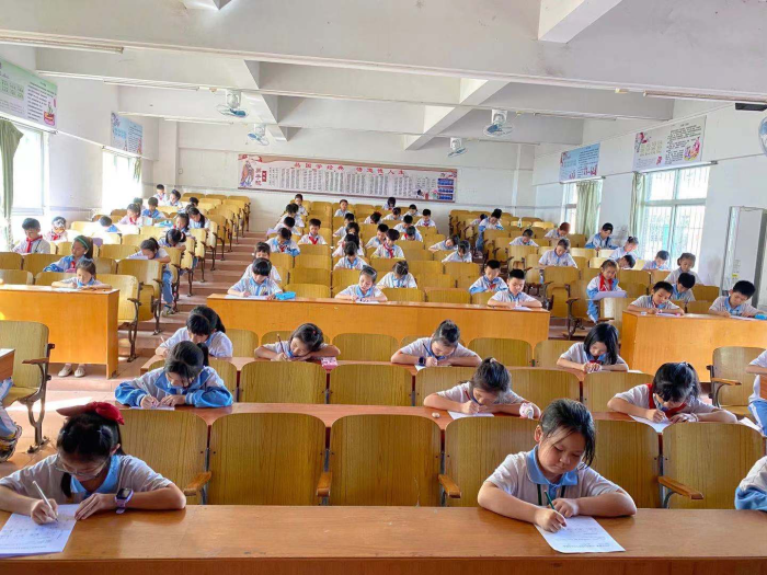 瞧!一年級的孩子們,他們一個個雖然年紀小,但個個卯足那股認真勁,一筆一筆地認真答題,那雋秀的字跡令人贊嘆不已!