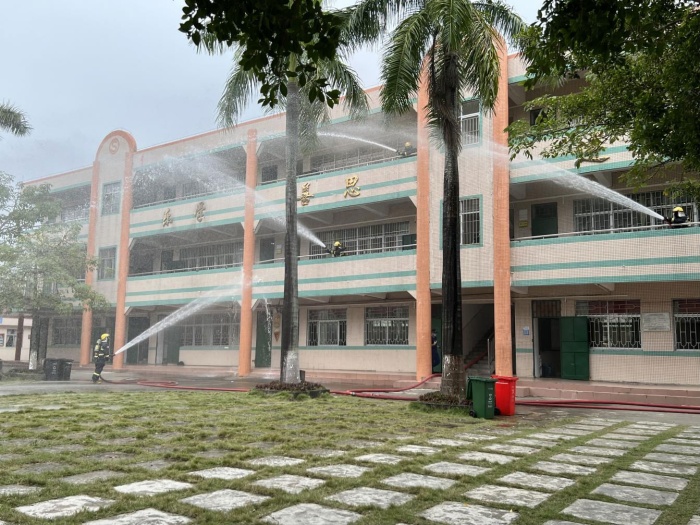 本次活動(dòng)共分為消防應(yīng)急疏散演練,消防安全知識(shí)講座,消防技能培訓(xùn)和參觀消防車四個(gè)環(huán)節(jié)。上午九時(shí)四十分活動(dòng)正式開始,學(xué)校提前在B棟教學(xué)樓二樓、三樓放置煙霧彈。隨著濃煙四起警報(bào)拉響,各班老師立即停止教學(xué)活動(dòng),指揮同學(xué)們捂住口鼻有序沿安全疏散通道撤離至指定的安全地點(diǎn)。疏散引導(dǎo)組的老師分別在各個(gè)樓梯路口引導(dǎo)同學(xué)有秩序地快速撤離,并仔細(xì)檢查各樓層的教室是否有同學(xué)滯留,在確認(rèn)本樓層沒有滯留同學(xué)后,立即撤離到指定安全區(qū)。在各班主任清點(diǎn)本班學(xué)生人數(shù)的同時(shí),消防隊(duì)車輛進(jìn)入校園滅火。神灣鎮(zhèn)消防救援局陳華新教官對(duì)活動(dòng)進(jìn)行了點(diǎn)評(píng),并為全校師生開展了消防安全知識(shí)講座,布置了“三清三關(guān)”(清陽(yáng)臺(tái)可燃物、清廚房雜物、清走道雜物;出門時(shí)記得關(guān)電關(guān)氣關(guān)火)家庭作業(yè)。學(xué)校為達(dá)感謝和敬意,熊校長(zhǎng)給專職消防隊(duì)贈(zèng)送了“情系學(xué)校 無(wú)私奉獻(xiàn)”錦旗。