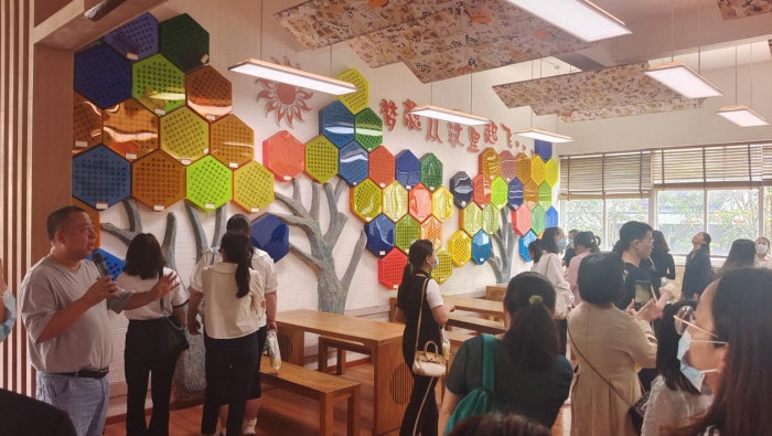 朗晴小學(xué)張鵬副校長熱情洋溢地分享校園文化建設(shè)紀(jì)實,如“朗晴校徽”“童眼看世界”“朗晴校史室”、各具特色的五大教學(xué)樓、朗晴版畫等等,通過張校長的闡述,在場的每一個人都深刻地了解到朗晴背后的故事,深切地感受到一段故事即是一段歷史,尤為珍貴;特別是“笑臉墻”,保留著每一屆孩子們的笑臉,這對于孩子們來說無疑是彌足珍貴的一份回憶,多年想起,依然會有溫暖的歸屬感。