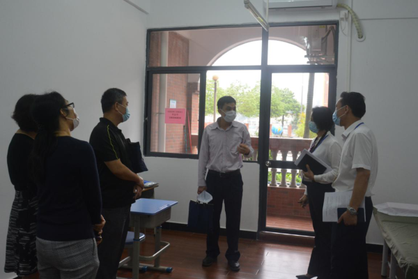 4月22日上午,由中山市教育和體育局、衛(wèi)健局、市場監(jiān)管局組成的學(xué)生返校疫情防控驗(yàn)收組蒞臨神灣育才學(xué)校開展驗(yàn)收工作。