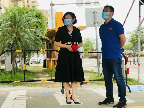 特殊的開學典禮后,神灣鎮(zhèn)人大主席李明生在譚瑞香校長的陪同下,參觀走訪了學校校醫(yī)室,查看防護物資的準備情況,詢問檢查了學校應急通道的完成情況,肯定了全校教職工為學生順利返校付出的努力。另一邊,神灣鎮(zhèn)衛(wèi)計局陳愛文同志親自抵達學生校車乘坐點的北門,在邱繼發(fā)副校長等人的陪同下,查看校車消毒清潔記錄表、詢問學生上下車體溫檢查的落實情況等,強調防疫防控期間也要常抓校車安全。為充分保障飯?zhí)霉芾砼c飲食安全,在李健主任的帶引陪同下,神灣鎮(zhèn)食監(jiān)所韓華彰所長一一查看了飯?zhí)霉ぷ魅藛T的健康證明材料,檢查了倉庫內(nèi)糧米、雞蛋等生活物資的儲存情況,強調學校后勤部一定要確保食材的新鮮與安全,做到后勤力量有保障、學生飲食重安全。