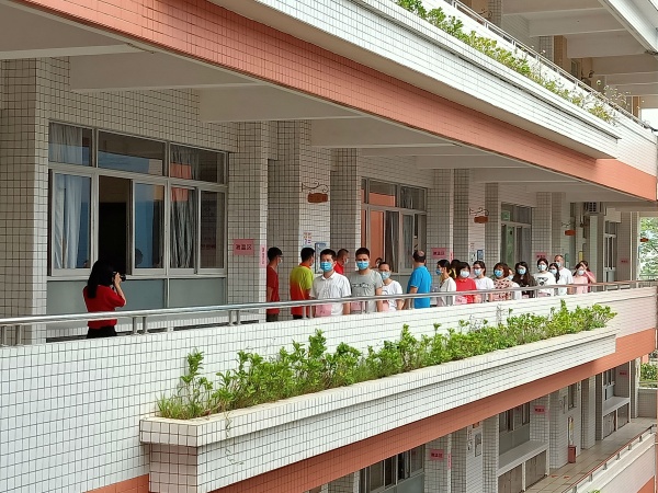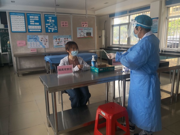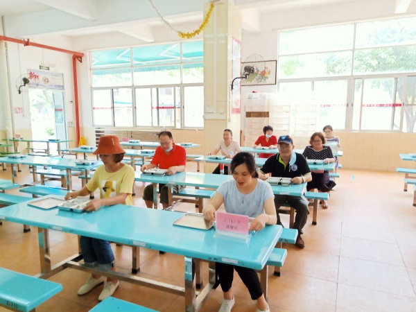 下午,實地演練開始了,參加演練的全體人員分崗位、分角色進(jìn)行了模擬演練。首先是做好學(xué)生入校前準(zhǔn)備工作,緊接著全體老師模擬四五六年級學(xué)生上課、午餐、午休、放學(xué)及課室消毒清潔等情景。所有人員全程佩戴一次性口罩,等待和行走過程中每人間隔1米以上。若有學(xué)生出現(xiàn)嘔吐或發(fā)熱情況,立即啟動應(yīng)急預(yù)案,對學(xué)生進(jìn)行隔離診斷登記、分級上報、通知家長、送醫(yī)治療,有序安置其他學(xué)生到指定場室,并對課室、飯?zhí)谩⒊鋈肟诟綦x室進(jìn)行消毒等。面對出現(xiàn)的異常狀況,老師對學(xué)生進(jìn)行心理疏導(dǎo),避免學(xué)生出現(xiàn)心理恐慌。