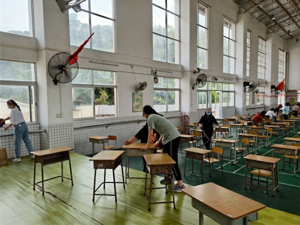 學(xué)校分別召開了行政會(huì)議、疫情防控會(huì)議,布置相關(guān)準(zhǔn)備工作,合力完善校園清潔消毒工作部署,統(tǒng)一安排、協(xié)同分工,明確各級(jí)組負(fù)責(zé)的工作內(nèi)容,專人專責(zé),動(dòng)員全體教師回校并積極參與到校園消殺工作中來。在工作小組及各年級(jí)組長的指導(dǎo)帶領(lǐng)下,大家兵分多路,按照不同學(xué)段、不同批次,進(jìn)行了班級(jí)課室桌椅的清洗和搬運(yùn),嚴(yán)格規(guī)范桌椅的消毒、數(shù)量限制與擺放,打造示范課堂。此外,為切實(shí)落實(shí)好疫情防控中“錯(cuò)峰就餐”、“分批活動(dòng)”的要求,學(xué)校動(dòng)員男教師清理食堂二樓舞蹈室,臨時(shí)安置學(xué)生分批就餐點(diǎn),減少師生交叉接觸,最大程度上降低感染風(fēng)險(xiǎn),消除安全隱患。與此同時(shí),全校清潔消殺工作也進(jìn)行得如火如荼,校園里隨處可見忙碌的背影。一、二年級(jí)教師們打掃課室、擦洗桌椅,讓學(xué)生有干凈明亮的課堂環(huán)境,三年級(jí)教師主要負(fù)責(zé)學(xué)校食堂的清理,為學(xué)生提供健康衛(wèi)生的就餐環(huán)境,四、五年級(jí)教師負(fù)責(zé)食堂二樓的清理,校內(nèi)外環(huán)境的整治工作由六年級(jí)教師完成,看起來浩大繁雜的清殺工程在大家各司其職而又齊心協(xié)力的努力下,順利而又高效完成了校園清殺任務(wù)。