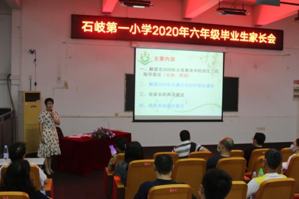 為了加強(qiáng)家校溝通,進(jìn)一步落實(shí)小學(xué)升初中的網(wǎng)上報(bào)名工作,近日,石岐第一小學(xué)借用石岐中學(xué)五樓階梯室召開(kāi)六年級(jí)學(xué)生家長(zhǎng)會(huì)。參加會(huì)議的有應(yīng)屆畢業(yè)生的家長(zhǎng)們、六年級(jí)的正副班主任以及學(xué)校行政。