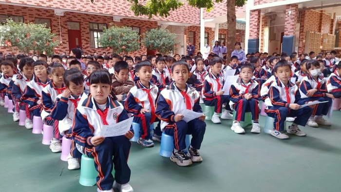 隨后,中山市京韻京劇社的演員們紛紛亮相,為學生們展示了京劇曲牌《小開門》、京劇聯(lián)唱:《紅燈記》——“都有一顆紅亮的心”、《紅燈記》——“窮人的孩子早當家”、《海港》——“大吊車真厲害”、《龍江頌》“一輪紅日照胸間”、《沙家浜》——“軍民魚水情”、《蕭何月下追韓信》——“三生有幸”、《戴諾》選段“山風吹來一陣陣”、毛主席詩詞《婁山關(guān)》、《梨花頌》、江姐《繡紅旗》等經(jīng)典京劇唱段,藝術(shù)家們通過唱、念、做等手段展示了劇中片段,讓現(xiàn)場師生們深入感受到京劇聲腔與表演的獨特魅力。孩子們觀看得津津有味,校園內(nèi)傳來一陣陣叫好聲和雷鳴般的掌聲。