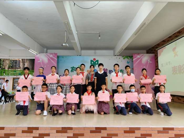 入隊(duì)儀式結(jié)束后,陳文卿校長向給孩子們送來節(jié)日祝福的茂名商會表達(dá)了感恩,并由劉曉君校長贈送錦旗和感謝信。同時,給德育方面獲獎和在各級各類比賽中獲獎的孩子們頒發(fā)了獎狀,給本學(xué)期各項(xiàng)獲獎的老師們也送上了最真摯的祝賀。