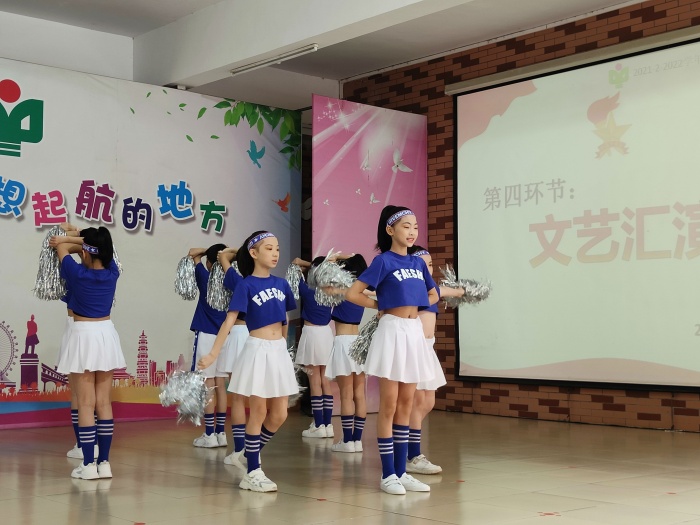 頒獎活動后,慶六一文藝匯演在歡快的音樂聲中拉開了序幕。 孩子們身著節(jié)日盛裝,載歌載舞,好戲連連。節(jié)目的類型多樣,有合唱、啦啦操、戲劇、詩歌朗誦、跆拳等別出心裁的表演形式。