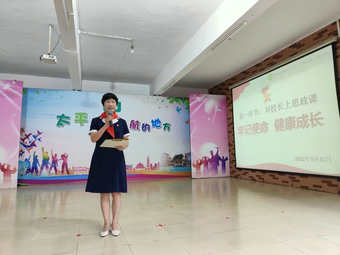 首先,劉曉君校長給全校師生上了一節(jié)題為《牢記使命 茁壯成長》的思政課,并向無微不至關(guān)愛太平小腳丫們的老師們表達(dá)了感謝,給全體少先隊(duì)員送去了節(jié)日的祝福,同時也鼓勵全體少先隊(duì)員在成長的路上,從細(xì)節(jié)做起,爭做新時代好少年。