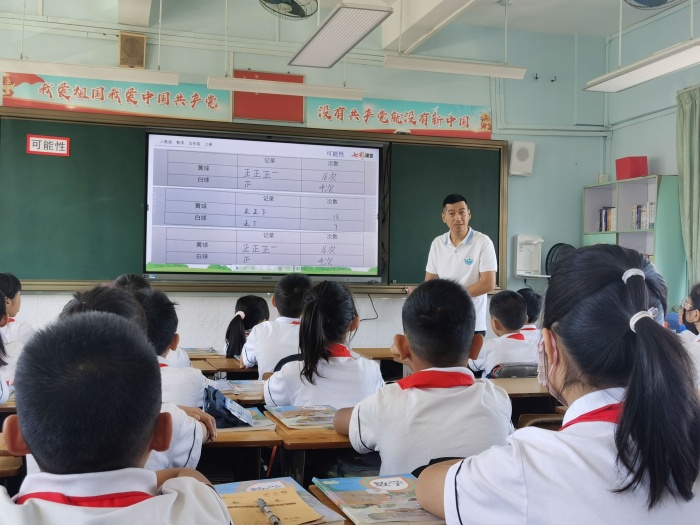陳建明副校長利用前置探究單進行課前探究,讓孩子提前感知可能性大小的核心知識。整個公開課陳建明副校長用有趣的摸球游戲貫穿全課,引導(dǎo)學(xué)生通過猜想、操作、驗證,進而總結(jié)規(guī)律,讓學(xué)生在充滿好奇的游戲中興高采烈地主動思考、探究新知。在課堂實踐環(huán)節(jié),陳建明副校長還引導(dǎo)學(xué)生聯(lián)系實際,發(fā)現(xiàn)藏在生活中的可能性大小的現(xiàn)象,并運用于實際,獨立設(shè)計抽獎游戲,且介紹設(shè)計思路,讓學(xué)生在互相評價中,實現(xiàn)思維的碰撞,培養(yǎng)學(xué)生的核心素養(yǎng),真正實現(xiàn)了《新課標》中“培養(yǎng)學(xué)生用數(shù)學(xué)的眼光觀察現(xiàn)實世界;用數(shù)學(xué)的思維思考現(xiàn)實世界;用數(shù)學(xué)的語言表達現(xiàn)實世界”的核心目標。陳建明副校長親切、幽默、機智的課堂教學(xué)風(fēng)格,深受學(xué)生喜愛,同時得到了中山市教研室小學(xué)數(shù)學(xué)教研員劉燕老師以及聽課老師的高度認可。