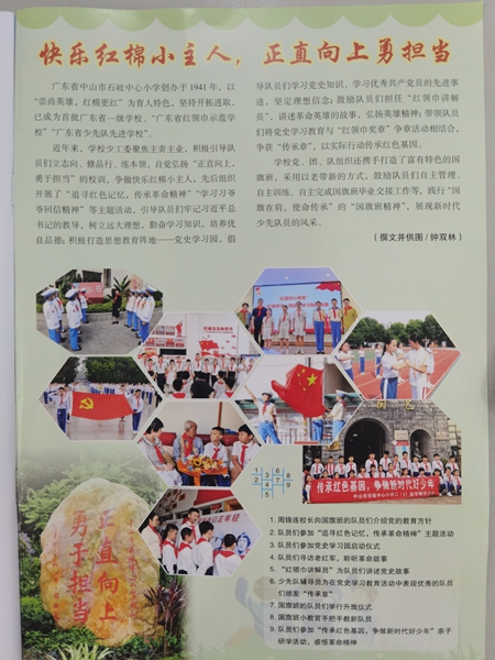 在2022年5月,國家級教育期刊《輔導員》雜志(下半月刊)以《快樂紅棉小主人 正直向上勇?lián)敗窞轭}對中山市石岐中心小學進行了專題報道,介紹了學校近年來少先隊建設(shè)的經(jīng)驗和成效。