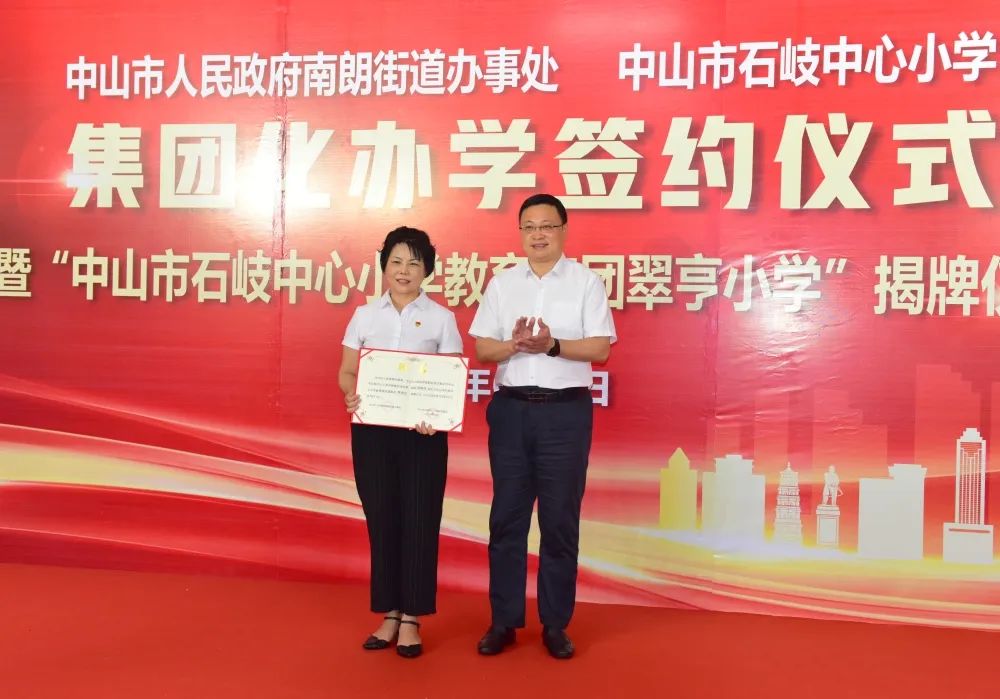 接著,南朗街道黨工委副書(shū)記、辦事處主任許行、中山市教體局副局長(zhǎng)王志紅為中山市石岐中心小學(xué)教育集團(tuán)理事會(huì)、石岐中心小學(xué)教育集團(tuán)翠亨小學(xué)班子頒發(fā)聘書(shū)。