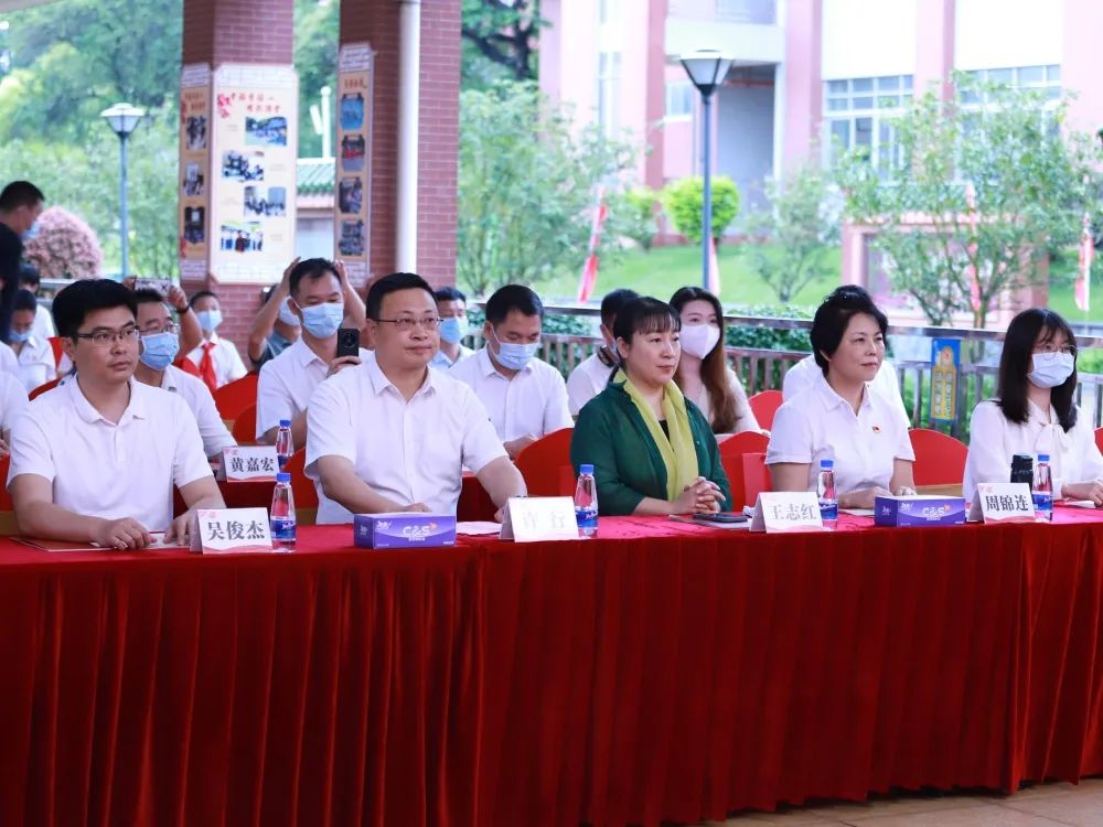 撰稿:黃建喜 審稿:梁鐘添 二審:梁建華 三審:周錦連 發(fā)布:區(qū)泳秋 五桂山下,蘭溪河畔,原野飄香,彩旗招展。2022年6月2日,中山市人民政府南朗街道辦事處、中山市石岐中心小學(xué)集團(tuán)化辦學(xué)簽約暨“中山市石岐中心小學(xué)教育集團(tuán)翠亨小學(xué)”揭牌儀式在翠亨小學(xué)隆重舉行。南朗街道黨工委副書(shū)記、辦事處主任許行同志,中山市教體局副局長(zhǎng)王志紅同志,中山市教體局基教科科長(zhǎng)閆玉宏同志,南朗街道辦事處副主任吳慧祺同志,中山市石岐中心小學(xué)梁麗文書(shū)記、周錦連校長(zhǎng)等領(lǐng)導(dǎo)嘉賓參加了本次活動(dòng)。參加活動(dòng)的還有石岐中心小學(xué)家委、教師和學(xué)生代表、南朗街道相關(guān)職能負(fù)責(zé)人、相關(guān)村委會(huì)負(fù)責(zé)人、中小學(xué)校長(zhǎng)代表,翠亨小學(xué)教師、家長(zhǎng)及學(xué)生代表。
