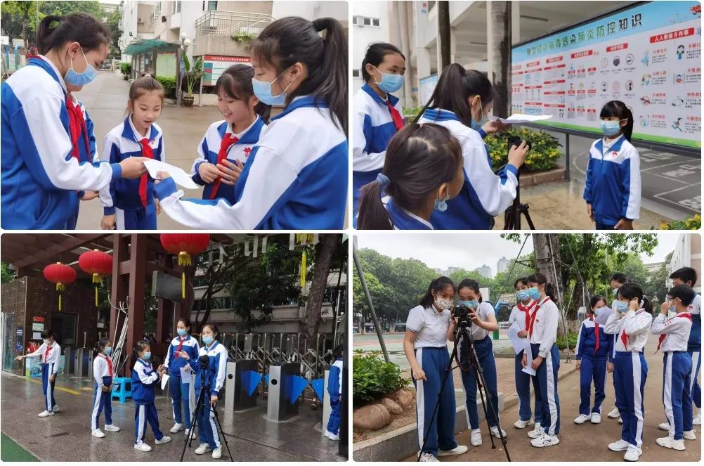 拍攝和制作由大隊(duì)委梁曦文、王映歡主要負(fù)責(zé)。拍攝過程中,她們?cè)谶x擇場(chǎng)景、培訓(xùn)演員、視頻剪輯等方面都付出了大量心血,圍繞《校園防疫十大指南》,自編自導(dǎo)自演,用情境劇的方式呈現(xiàn)了宣傳內(nèi)容。作品新穎活潑,充分彰顯了學(xué)校少先隊(duì)員組織策劃和拍攝執(zhí)行能力。