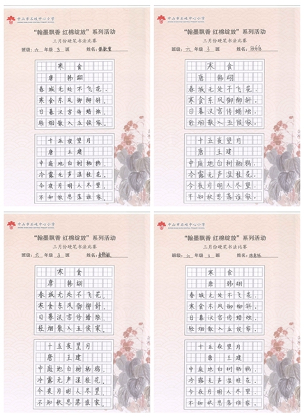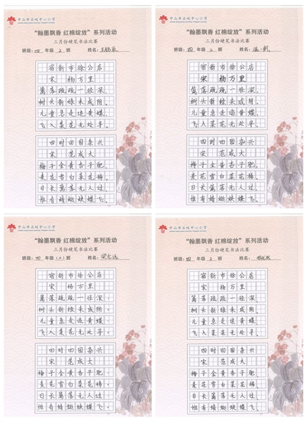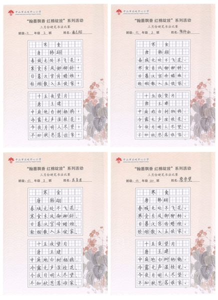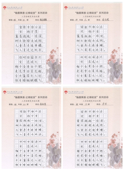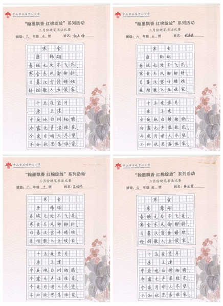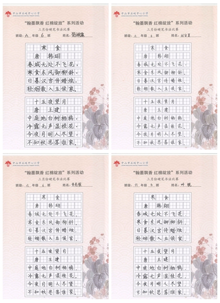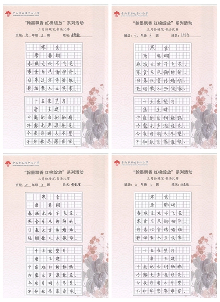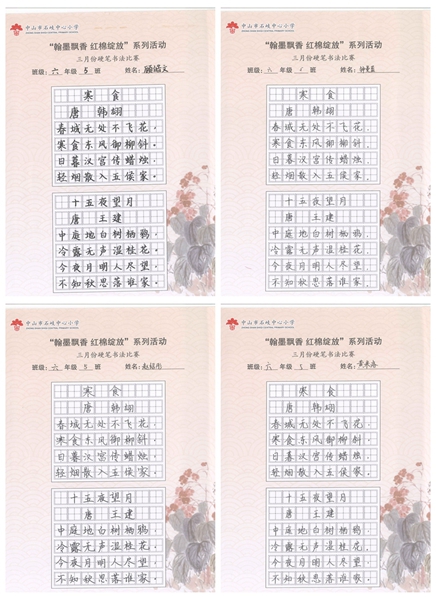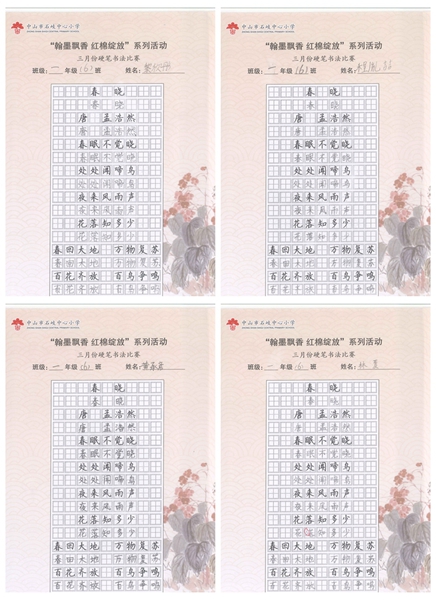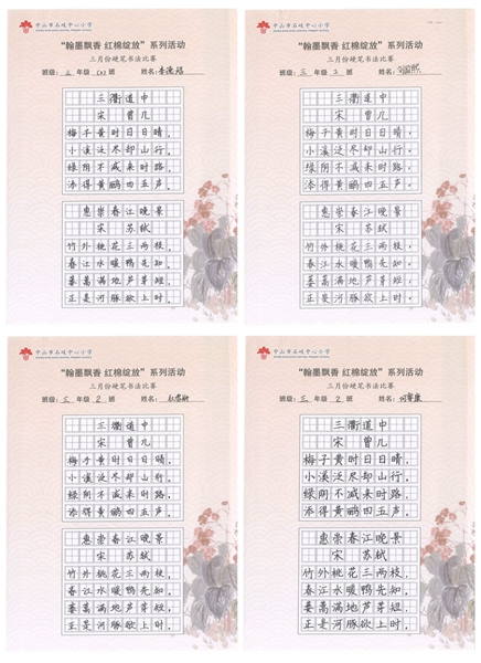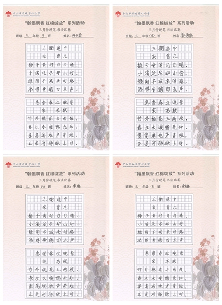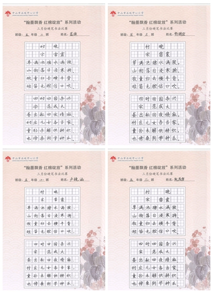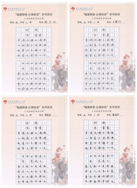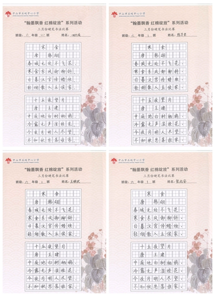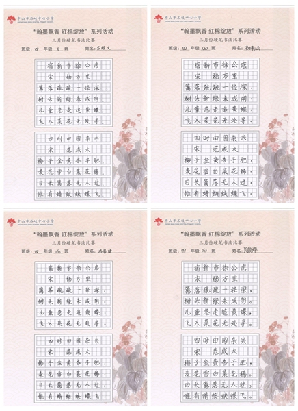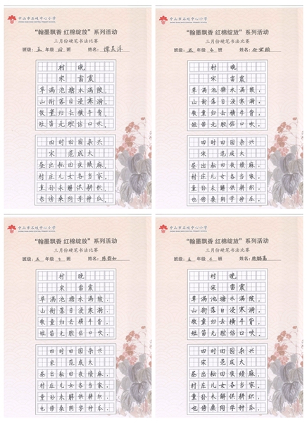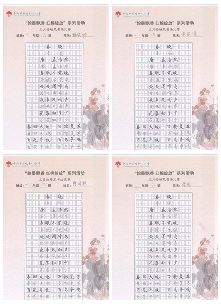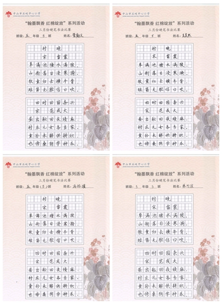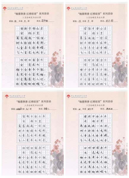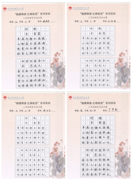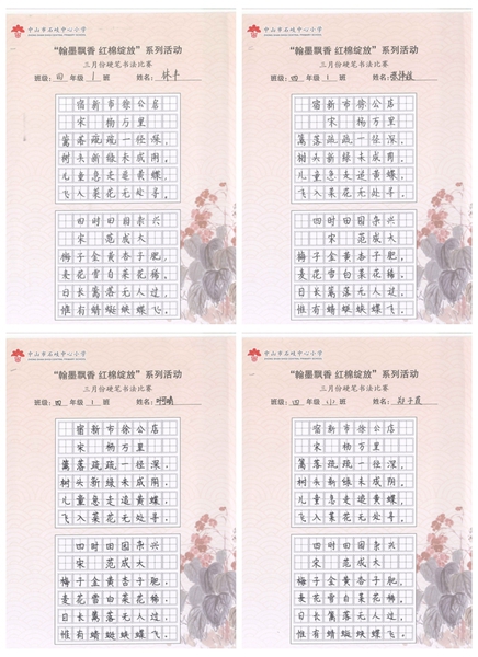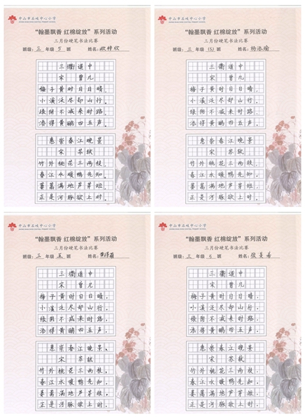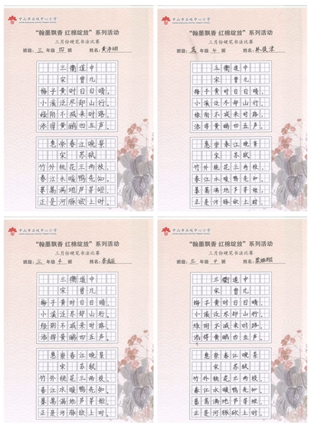 撰稿:公春江 審稿:王文儒 二審:黃建喜 三審:周錦連 發(fā)布:區(qū)泳秋 ——中山市石岐中心小學(xué)全校硬筆書法雙月展獲獎作品系列