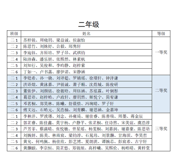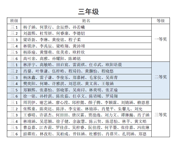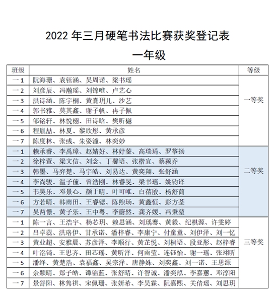 通過評委初評和交叉復(fù)評,以班級為單位,每班評出一等獎4幅,二等獎6幅,三等獎8幅。評委老師發(fā)現(xiàn)同學(xué)們的書法作品筆畫遒勁,結(jié)構(gòu)舒展,章法協(xié)調(diào),在不斷進(jìn)步中。現(xiàn)將獲獎名單和部分獲獎作品展示出來,供大家欣賞。