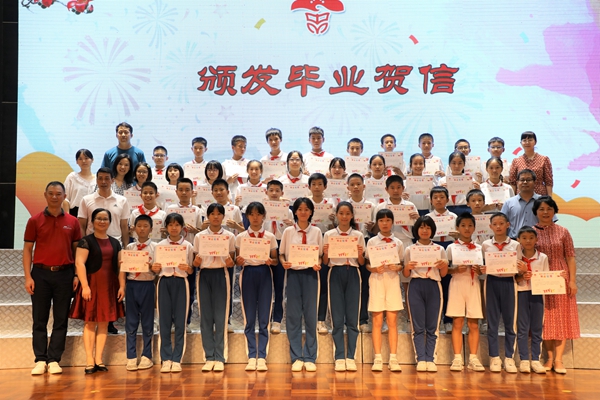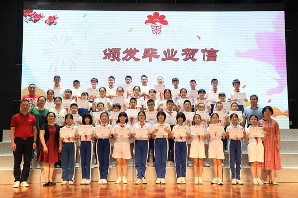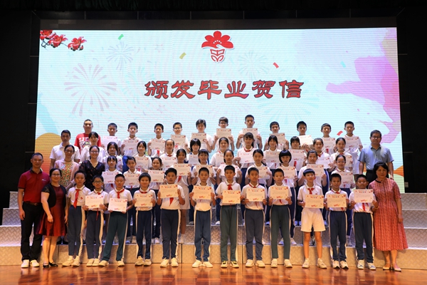 同學(xué)的們即興演唱將畢業(yè)典禮推向了高潮。畢業(yè)典禮在頒發(fā)畢業(yè)賀信和熟悉中的《木棉之歌》音樂(lè)聲中落下帷幕,為學(xué)生六年的小學(xué)生活畫(huà)上圓滿的句號(hào)。相信石岐中心小學(xué)的每個(gè)畢業(yè)生都會(huì)帶著母校的誠(chéng)摯的祝福,師長(zhǎng)的諄諄教誨,去擁抱更美好的明天。