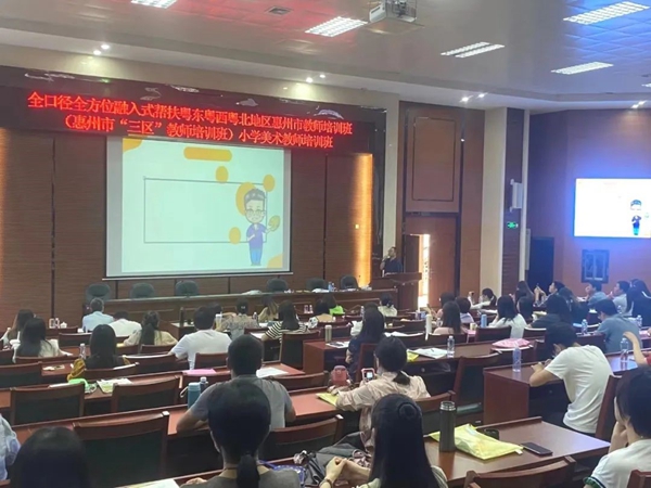 撰稿:龔寶香 審稿:唐鴻雁 二審:黃建喜 三審:周錦連 發(fā)布:區(qū)泳秋 為深入貫徹落實(shí)習(xí)近平總書(shū)記關(guān)于定點(diǎn)幫扶工作的重要指示精神,落實(shí)中山市教育系統(tǒng)東西幫扶協(xié)議。2022年6月16-17日,在中山市教師發(fā)展中心“三名”辦公室的安排下,中山市名教師工作室主持人劉堅(jiān)老師、中山市石岐中心小學(xué)龔寶香老師等4人,奔赴廣東省惠東縣開(kāi)放大學(xué),為惠州市“三區(qū)”(粵東粵西粵北)的美術(shù)教師開(kāi)展講座,進(jìn)行現(xiàn)場(chǎng)課例點(diǎn)評(píng)、教學(xué)經(jīng)驗(yàn)分享,與惠東線上學(xué)員交流等教研活動(dòng)。